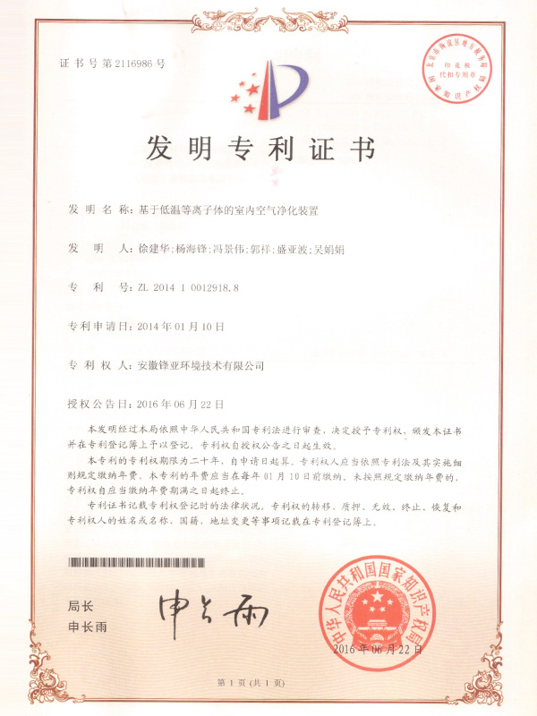 基于低溫等離子體的室內(nèi)空氣凈化裝置