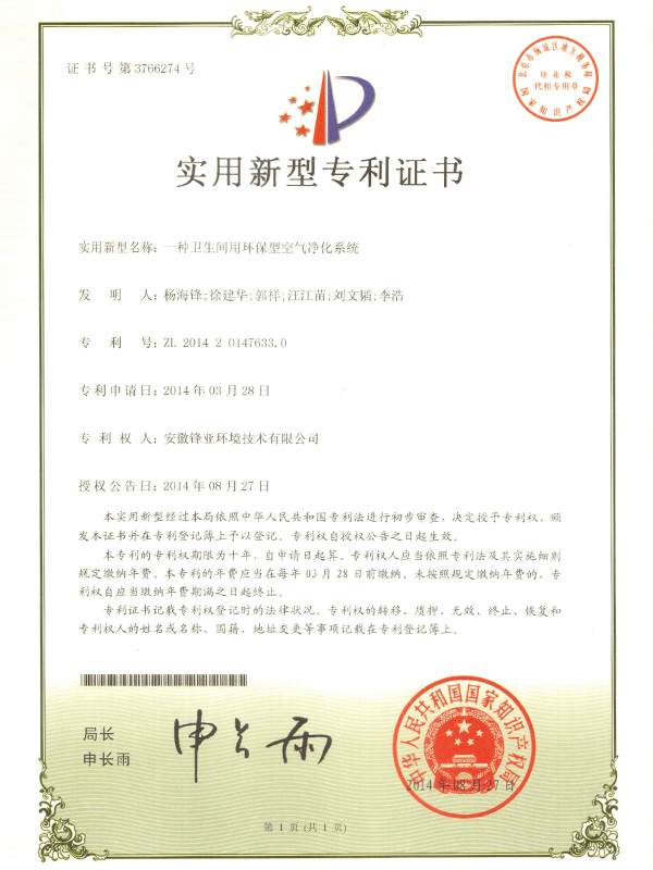 一種衛(wèi)生間用環(huán)保型空氣凈化系統(tǒng)