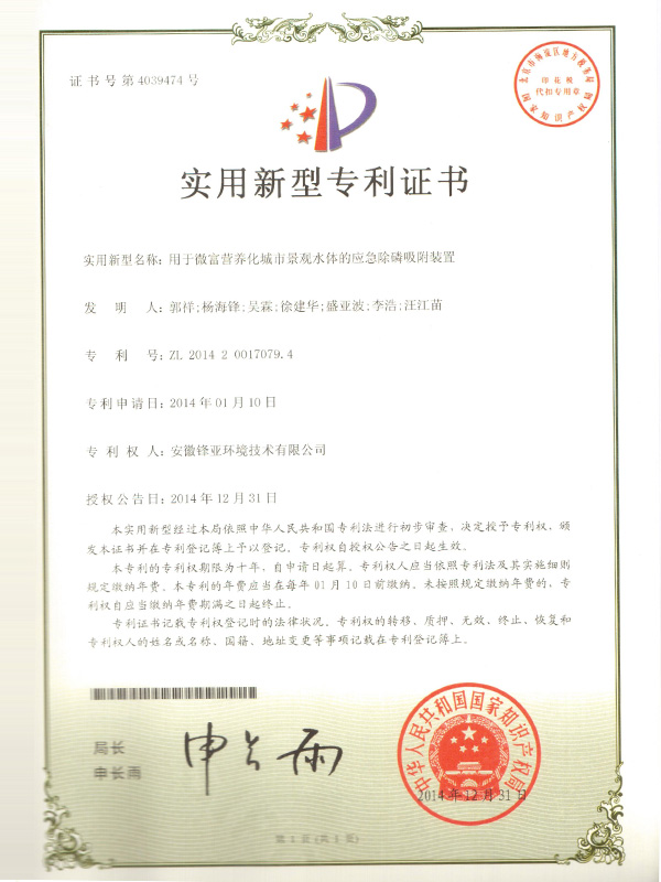 用于微富營養(yǎng)化城市景觀水體的應(yīng)急除磷吸附裝置